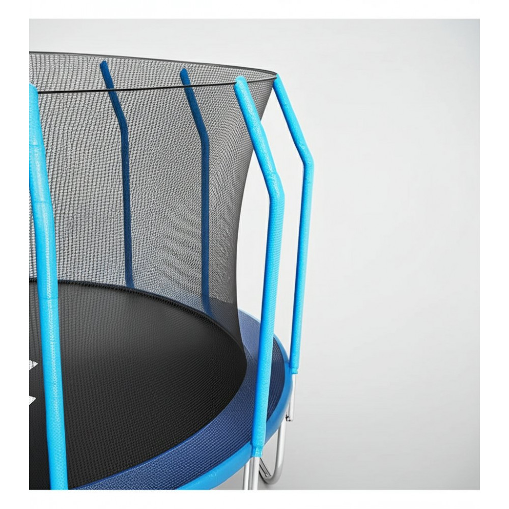 В месте с батутом устанавливается защитная сетка. Сетка изготовлена из нейлона, который обладает высокими характеристиками прочности. Зайти и выйти на батут можно через специально оборудованный в сетке проход, который сделан с помощью молнии и зафиксирован снаружи кнопками.