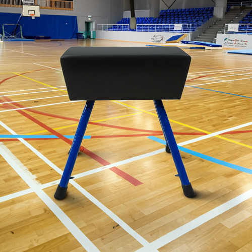 Козел обладает устойчивость на поверхности, за счет конструкции зажимов и стоек. Регулировка козла на неровной поверхности делает спортивный снаряд универсальным для любого пола.
