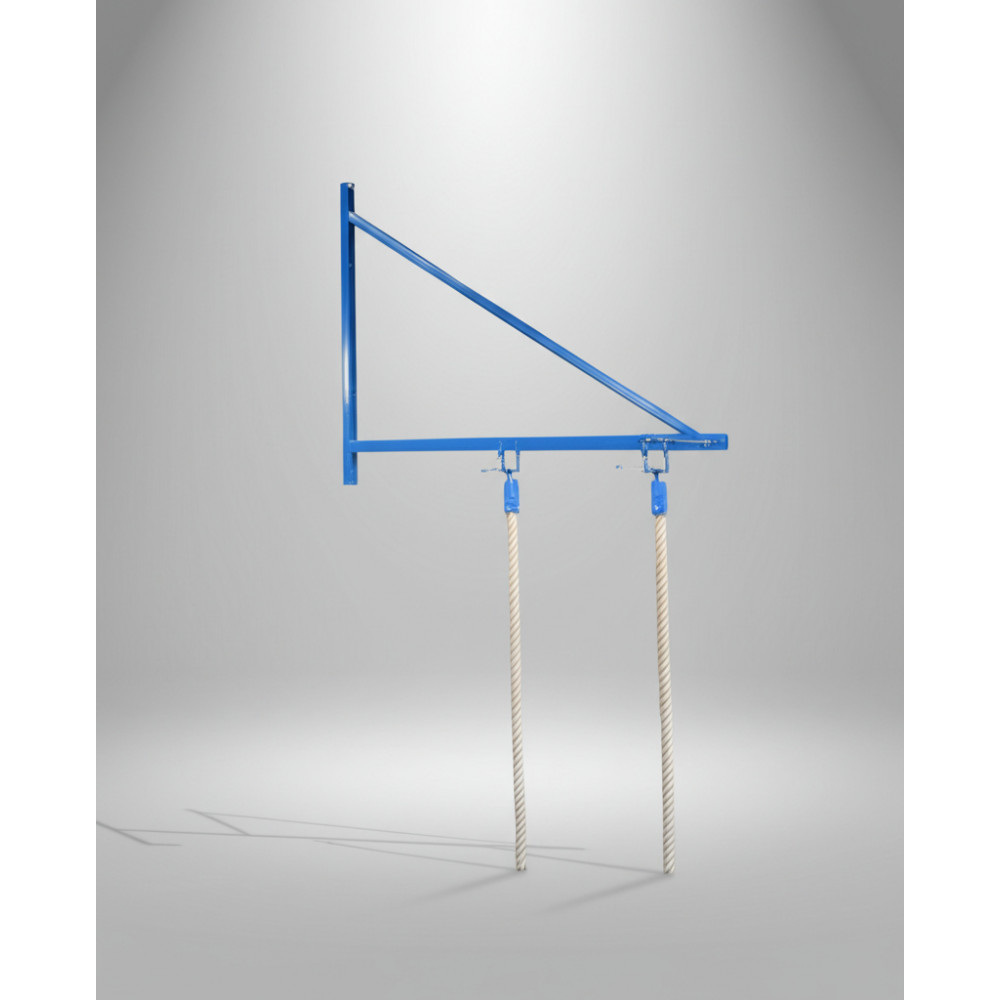 Консоль для канатов и шестов на 2 снаряда представляет собой настенное крепление с выносом 2000 мм, выполненное из прочного металла, с максимальной грузоподъемностью до 450 кг.