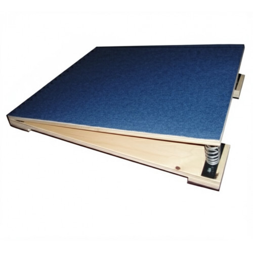 Мостик изготовлен из многослойной березовой фанеры толщиной 18 мм. Платформа мостика покрыта ковролином, что препятствует скольжению ног во время прыжков. Размеры изделия составляют 1200х600х185 мм. Верхняя поверхность покрыта ковролином, который обеспечивает хорошее сцепление, не дает скользить. Такой вид оборудования подходит для использования в школьных спортзалах. Оснащен двумя пружинами из закаленной стали.