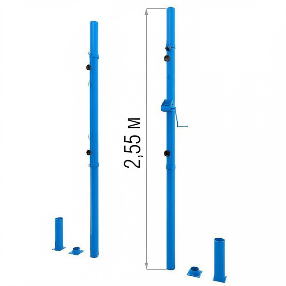 Волейбольные стойки с удлиненными стаканами высотой 2,55 метра обеспечивают надежность и универсальность в установке сетки на любое расстояние.
