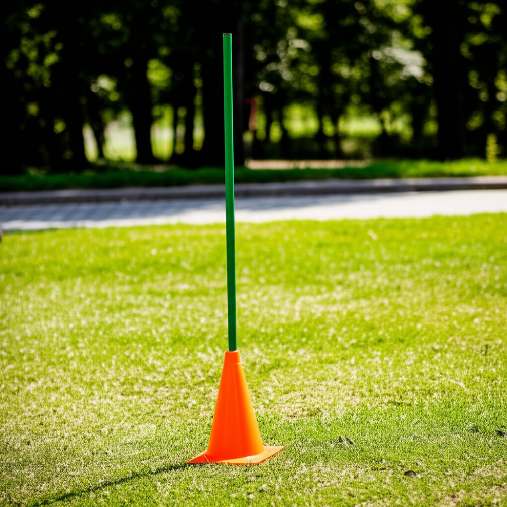 Стойки для обводки – это эффективный инструмент для тренировок, состоящий из конусообразного основания высотой 35 см и мягкой палки из ППЭ, достигающей 170 см.