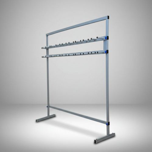 Стеллаж для хранения 10 пар лыж - это разборная конструкция, выполненная из профильной трубки с порошковым напылением, оптимально подходящая для компактного и аккуратного хранения лыж.