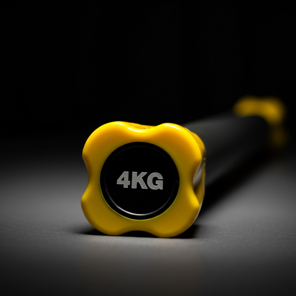 Бодибар обрезиненный 4 кг (желтый) - это универсальный фитнес-инструмент, предназначенный для разнообразных тренировок, выполненный из стали и синтетической пенки, с длиной 120 см и диаметром 32 мм.